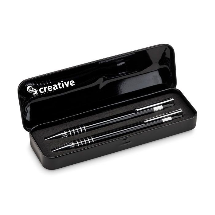 A Ballpoint pen set with metal case for all occasions, with a shiny and elegant touch