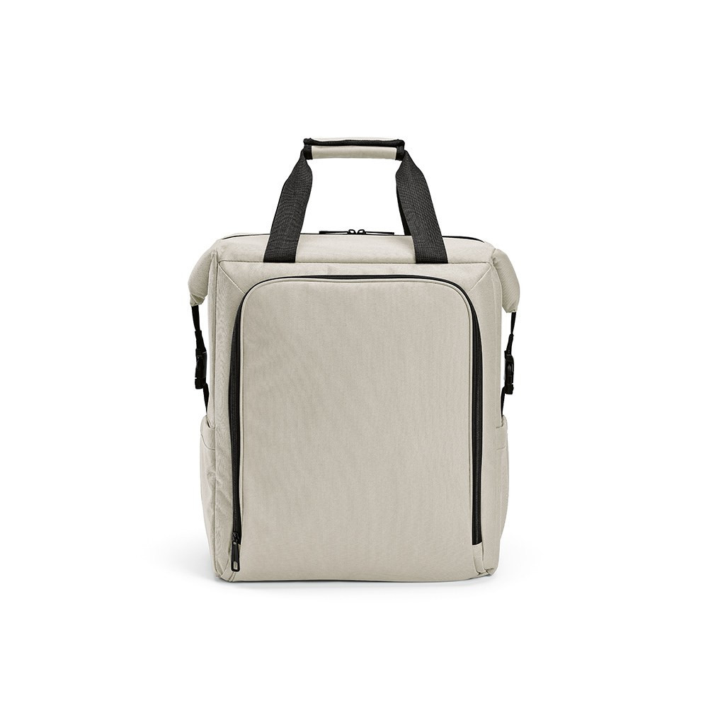 Dublin 28L cooler backpack crafted from rPET, with a big front pocket and two side pockets. A big compartment that guarantees generous storage. Keep your refreshments cool and enjoy easy cleaning. 2 ways to carry: bag or backpack. Suitable for 45 cans.