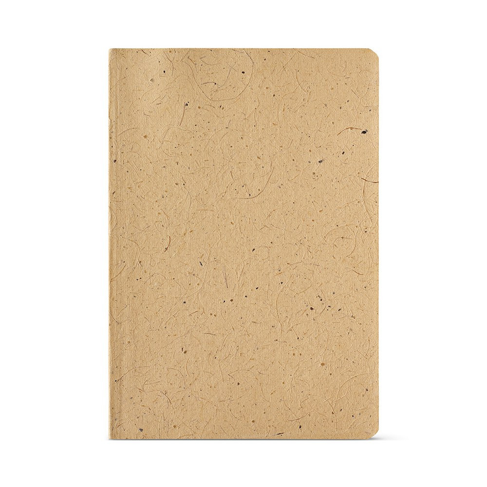 Fitzgerald A5 notebook with a Coconut Husk cover (60% coconut husk and 40% cotton rag). It boasts 196 recycled 80gsm dotted pages with a section for date and page reference all in a soft cover. The flysheet highlights a unique story. Supplied in an individual kraft sleeve.