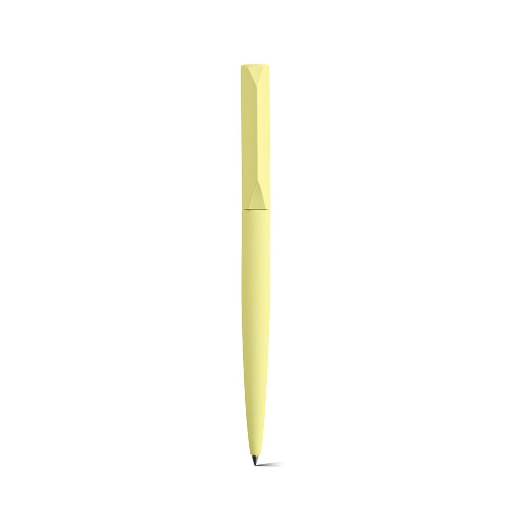 Rabelais is a twist action ball point pen with a recycled aluminium barrel and rABS top. The rotation system releases 1 Km of black Dokumental® ink (0.38mm tip). Available in 6 pastel shades and packaged in a recycled and unique design triangular white box with magnetic closure.