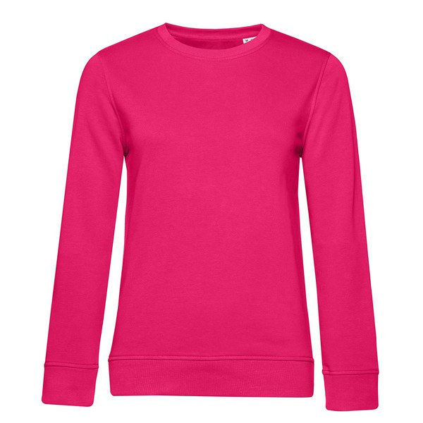Women's organic round neck sweatshirt made from OCS cotton and RCS polyester, offering a premium sustainable surface for bulk printing or daily wear. This BCW32B model is designed for eco-friendly comfort, featuring a blend of 80% OCS certified ringspun organic cotton and 20% RCS recycled polyester. The 280 g/m² weight provides a substantial feel while the unbrushed interior ensures breathable comfort throughout the day. The 100% cotton exterior is specifically engineered for high-quality customization, making it a reliable canvas for screen printing or embroidery. Designed with a feminine fit, it includes neat ribbing on the collar, cuffs, and waistline for a structured silhouette. Whether used as a high-quality blank for retail or customized for corporate events, this sweatshirt combines durability with environmental responsibility. The 'Hi! I'm Organic' label at the collar highlights its sustainable credentials for end-users. Available in sizes XS to 2XL, it supports diverse inventory needs for wholesale and bulk orders.