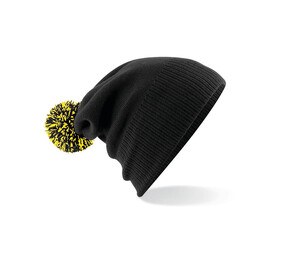 Beechfield BF450 - Black / Yellow - Trendy Two-Tone Pompom Winter Beanie