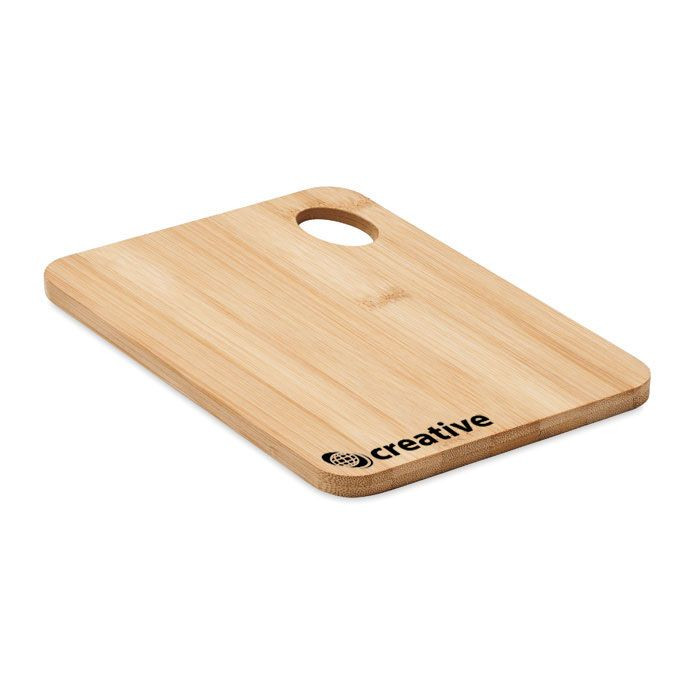 Cutting board in bamboo wood with hanging hole.