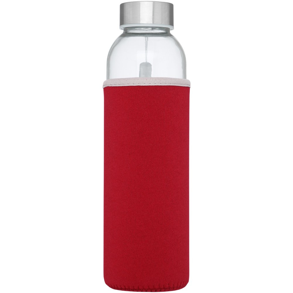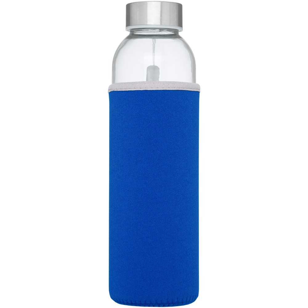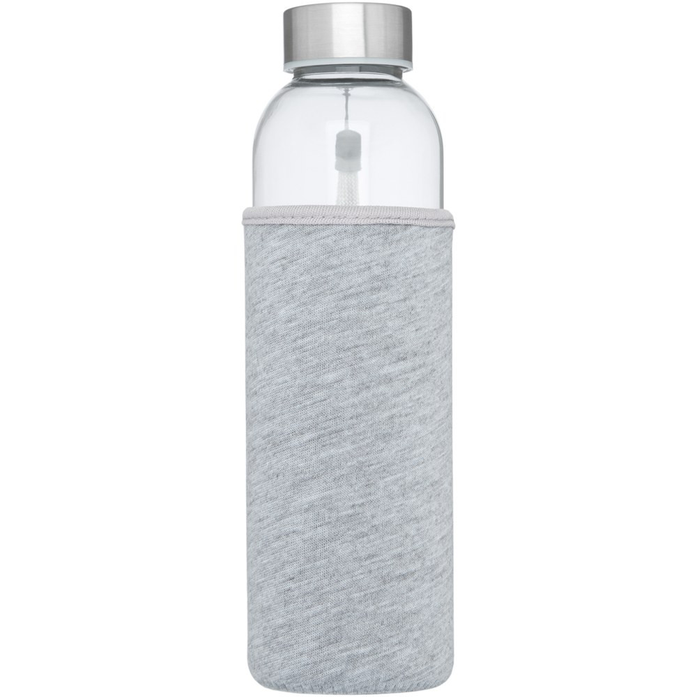 Single-walled glass bottle with screw-on lid. The lid features a strap for easy carrying, as well as a neoprene sleeve. Recommended for cold beverages. Do not freeze, do not microwave. Volume capacity is 500 ml. Presented in a gift box.