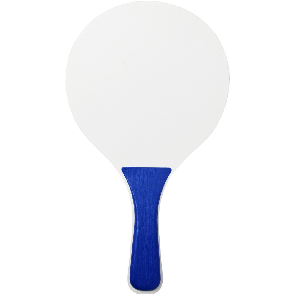 Always fun with this beach game set offered in a wide range of colours. This durable beach game set is made of MDF wood with coloured PP handle. Packed together with an like colour soft ball in an net packing, allowing easy to carry on a fun day to the beach. Warning! Not suitable for children under three years. Small balls. Choking hazard.