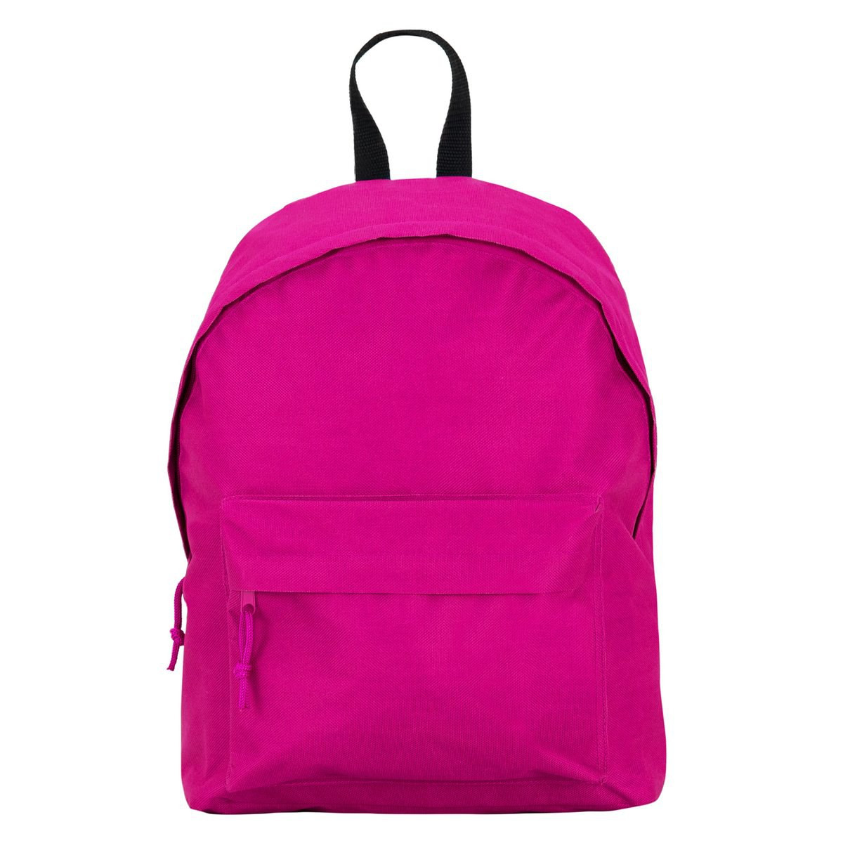 Backpack in resistant polyester 600D of bold design in a varied range of colors, with zipper closure and front pocket. With reinforced corners, handles with strap for easy opening and accessories in black. Padded back and adjustable shoulder straps with padding.