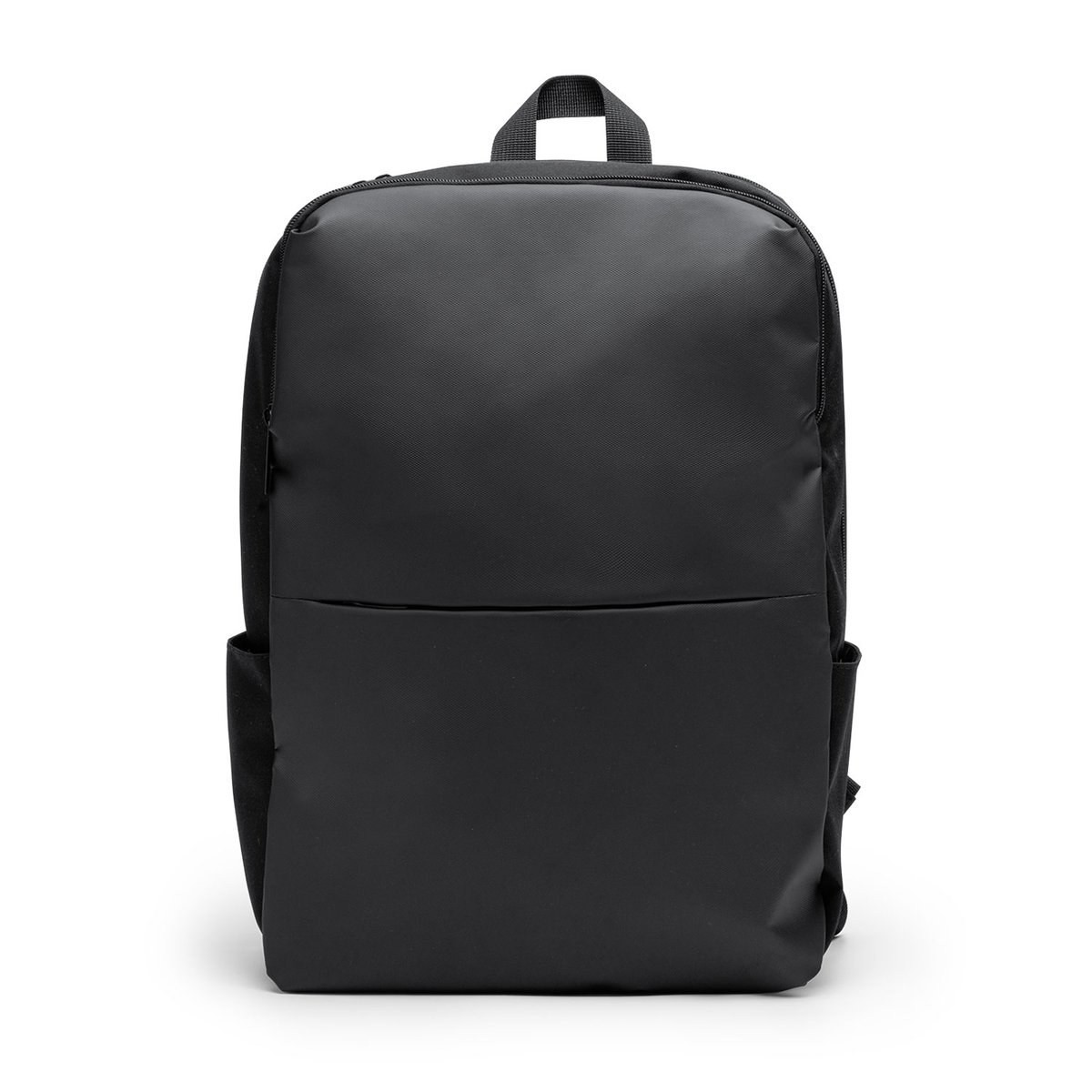 Computer backpack made of PU leather and RPET 600D recycled polyester. Main compartment with internal padded pocket suitable for 15" laptop. Second compartment with zip closure. Open front pocket. Two side pockets. Padded back and shoulder straps.