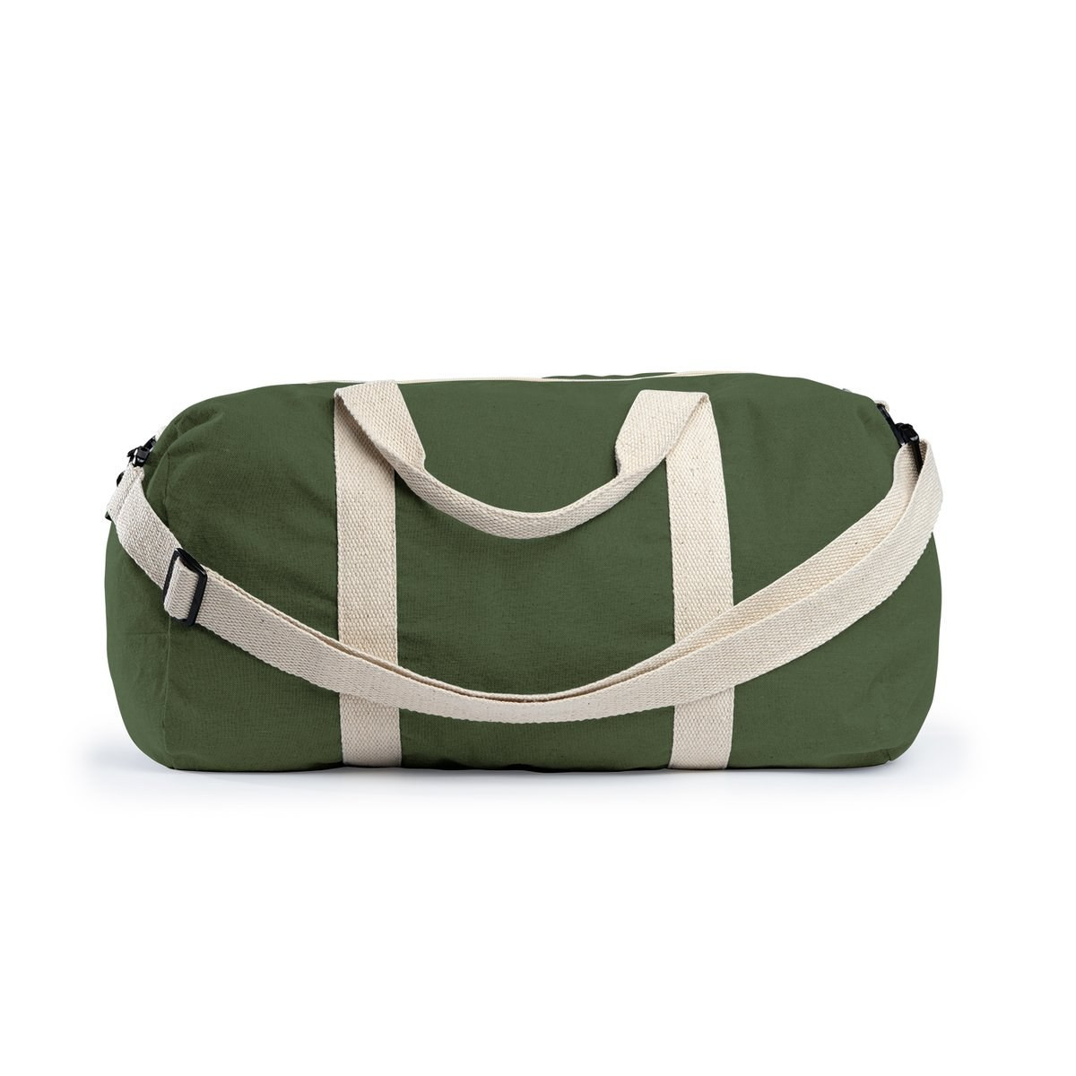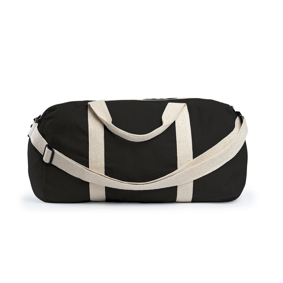 Sports bag in recycled cotton 300gr/m2, large main compartment with zip closure, reinforced handles, adjustable shoulder strap.