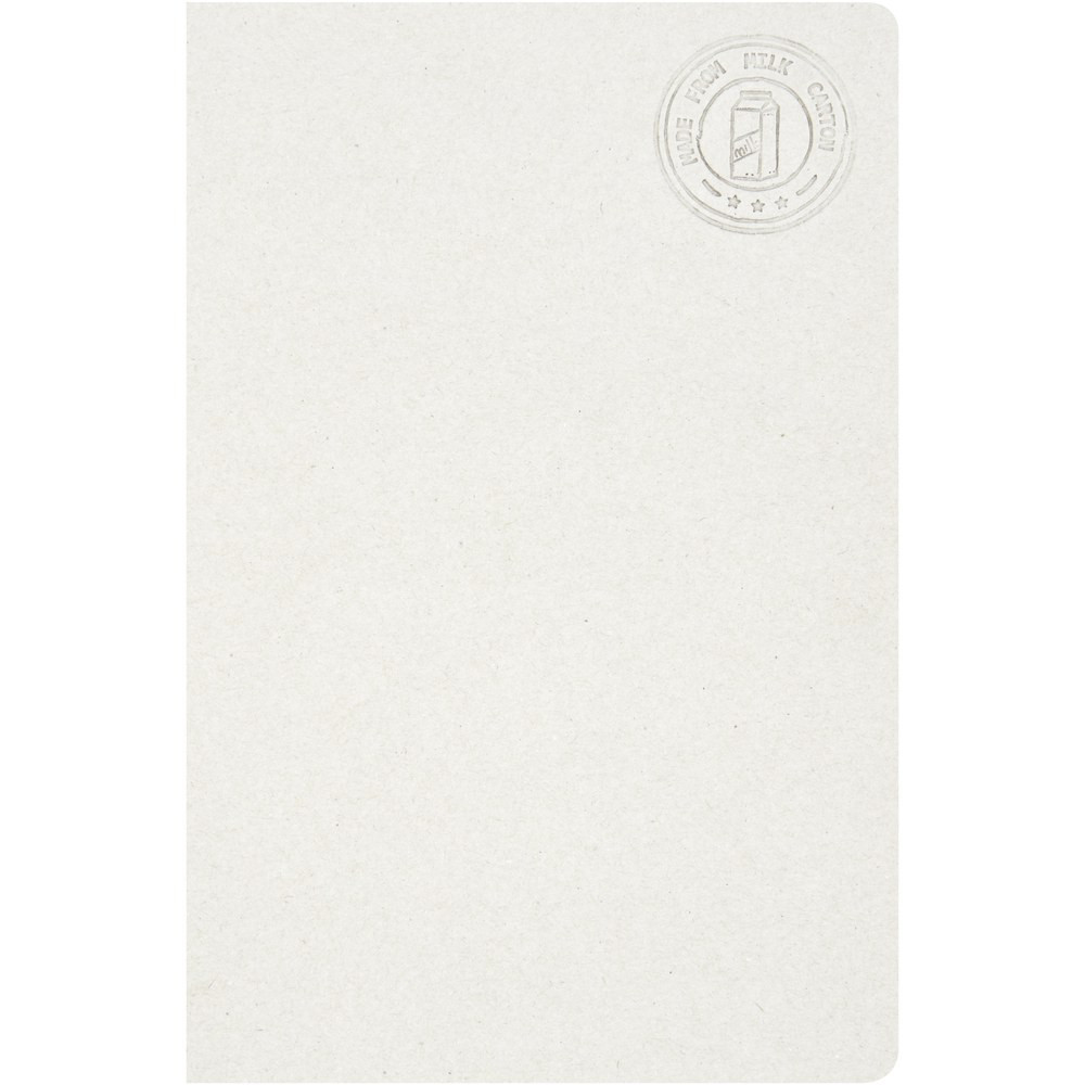 A5 size reference spineless notebook with 80 80 g/m² lined sheets, made from recycled milk cartons (up to 70%). Used milk cartons are collected, sorted, processed and turned into paper, truly turning waste into something useful.