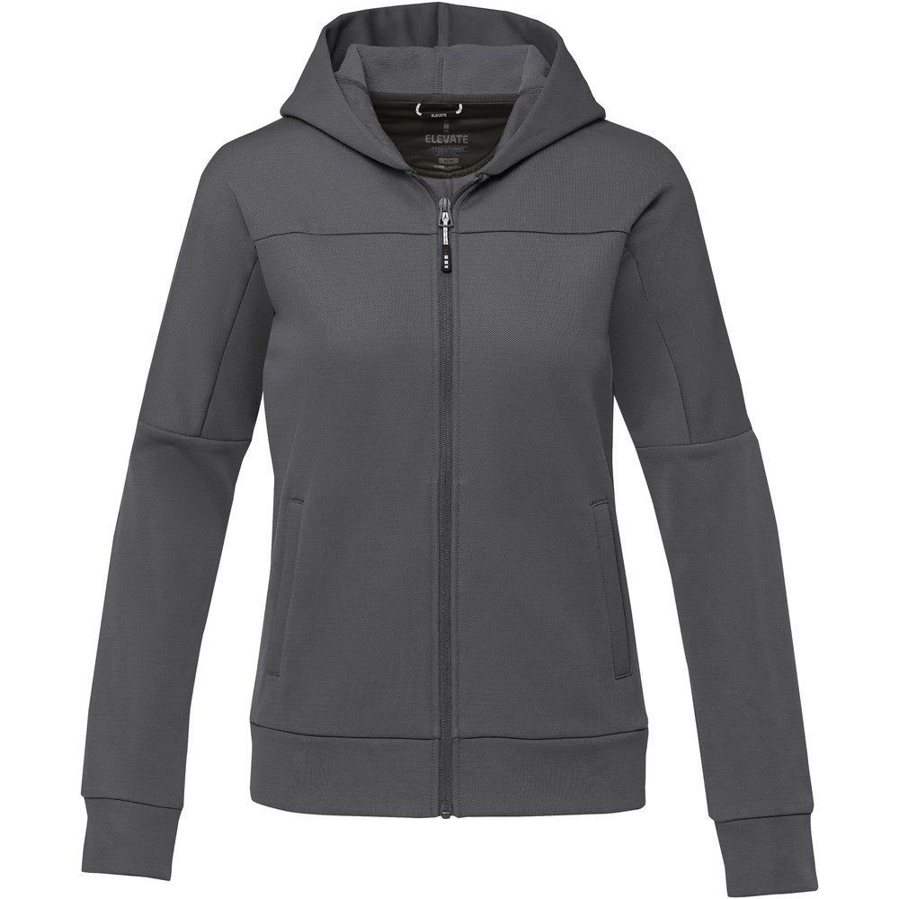 The Nubia women's performance full zip knit jacket – a perfect fusion of style and innovation. Made from a 245 g/m² polyester and Sorona® blend, the material showcases a distinct "pique look" texture, setting it apart with its unique and characteristic look. At its core, the Nubia features the remarkable Sorona® fabric, a material that sets new standards in comfort and performance. This sustainable fabric, comprising 30% of the jacket's composition, offers an exceptional balance between flexibility, durability, and environmental responsibility. The jacket's interior is thoughtfully brushed, ensuring a soft feel against your skin. This brushed interior not only enhances comfort but also helps to retain warmth, making this jacket an ideal companion in cooler weather. Functionality is elevated to a new level with the inclusion of an interior media exit port complete with a cord guide. This jacket is designed with a fitted shape for a feminine look.