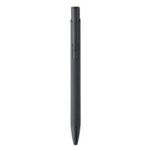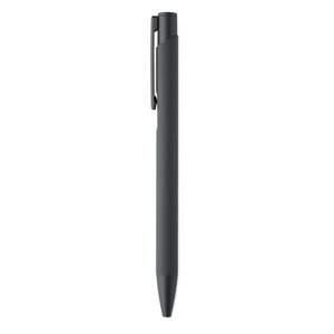 Push-type pen made of recycled aluminium with iron clip and colour rubberised barrel.