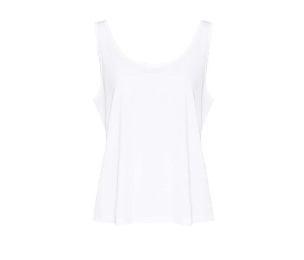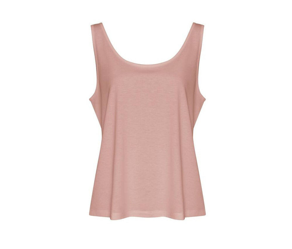Relaxed fit. Side seams. Size label only. Tri-blend fabric. Self fabric binding arount neckline and armhole. Twin needle stitching detail on sleeve and bottom hem.