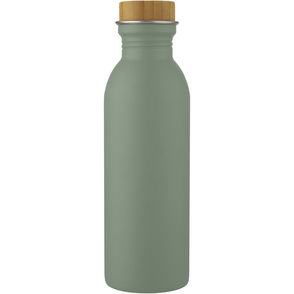Single-walled 18/8 stainless water sport bottle with a bamboo lid. BPA-free, tested and approved under German Food Safe Legislation (LFGB). Tested and approved for phthalates content according to REACH regulations. The bamboo used is from sustainable, environmentally and socially responsible sources. Volume capacity is 650 ml. Hand wash recommended. Presented in a recycled cardboard gift box.