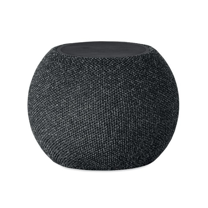 5.0 wireless speaker and 15W wireless charging in ABS and RPET fabric and black coated bamboo detail on top.