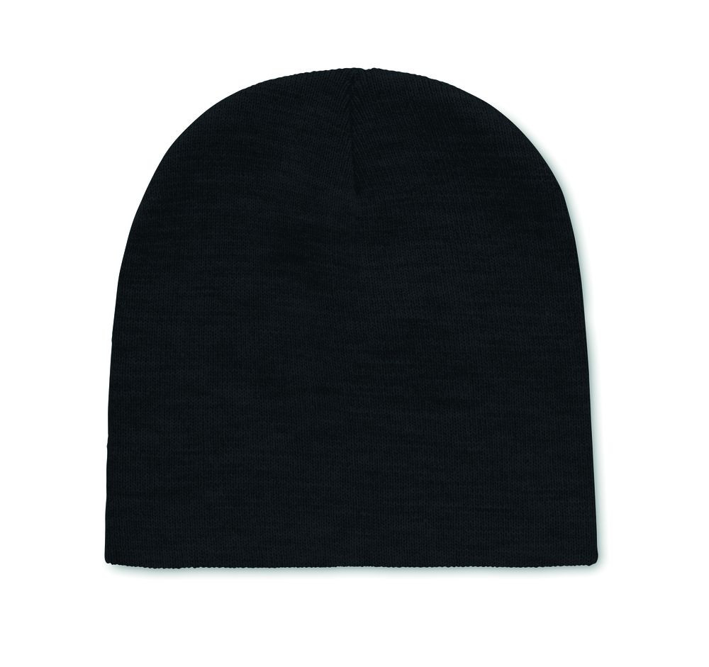 Unisex knitted Beanie hat in soft stretchable RPET polyester.