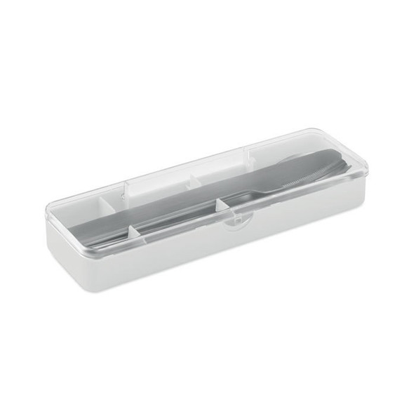 This set includes a fork, knife and spoon.