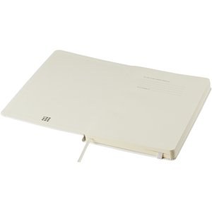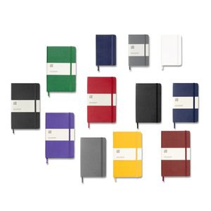 The Moleskine Classic large (13x21cm) hard cover notebook features a cardboard bound cover with rounded corners, acid free paper, a ribbon bookmark and elastic closure. On the first page in case of loss notice with space to jot down a reward for the finder. Attached to the back cover an expandable inner pocket that contains the Moleskine history. The pocket can be used for loose papers and notes. Contains 240 ivory-coloured ruled pages. Available in a wide range of stylish vibrant colours.