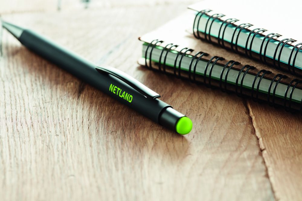 When the logo is engraved on to the barrel, the colour revealed matches the colour of the touch tip.