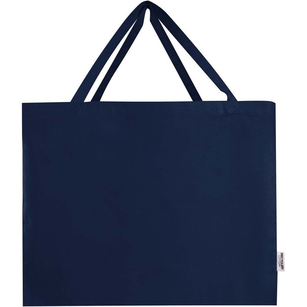 The oversized Odessa tote bag made from 100% GRS recycled cotton is designed for comfortable carrying with its 30 cm long shoulder handles and extra large main gusset compartment. Whether it is to carry around heavy books or groceries, this bag is designed to cover all needs. Print methods available for this tote bag are also certified, making sure that the entire supply chain is transparent and certified. The 220 g/m² cotton ensures durability and reliability, giving the bag a resistance of up to 10 kg weight. Made in India.