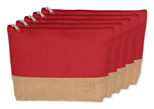 Pack of 5 Kimood KI0276 - Arandano Red / Natural - Eco-Friendly Canvas and Jute Zipper Pouch
