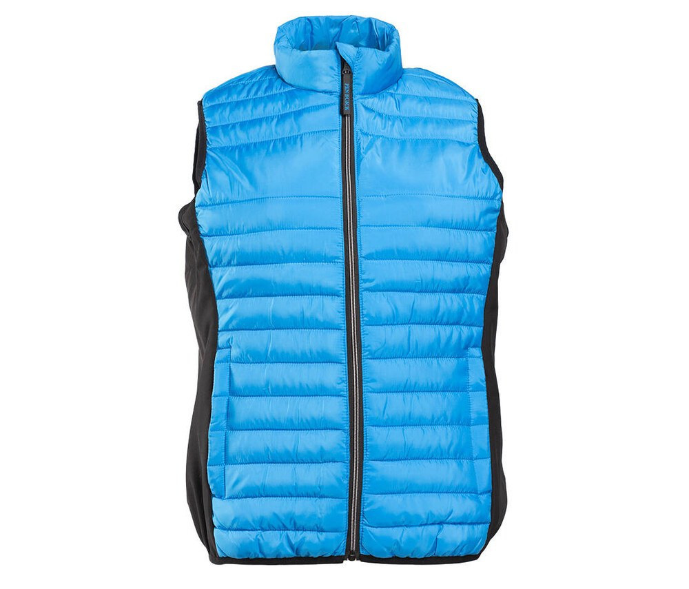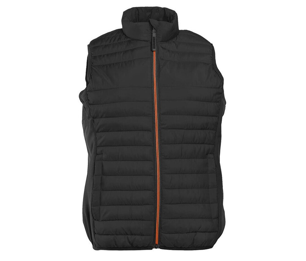This 2 fabric lightweight bodywarmer is the perfect solution for keeping warm without feeling bulky. Its fitted style guarantees comfort in movement and a nice shape, and its modern material provides perfect insulation while absorbing perspiration. The bodywarmer has 2 side zip pockets and contrast zippers. It comes in 17 different fashionable colours.