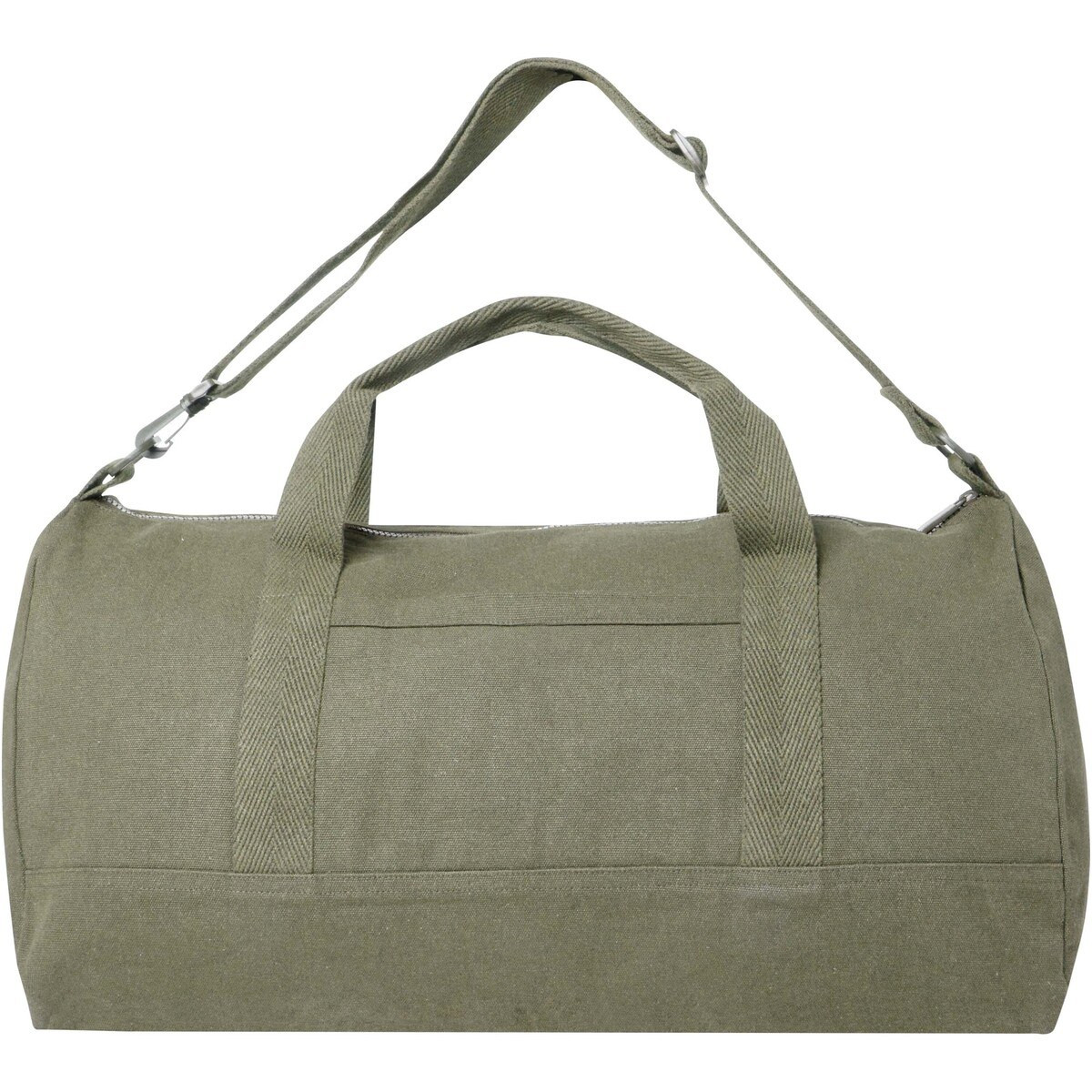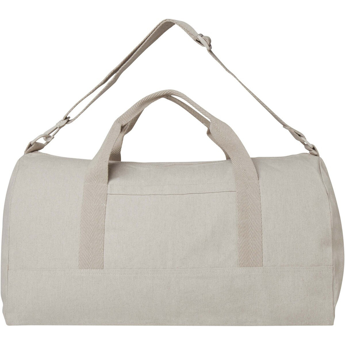 The Porter duffel bag made of 500 g/m² recycled cotton and recycled polyester comes with a spacious main compartment for optimal storage of larger items and a small front slip pocket to store small items such as a passport or phone. The duffel can be carried by the 2 short handles, or by the expandable and detachable shoulder strap that can be adjusted for maximum comfort. The duffel bag incorporates Cyclo® recycled fibres where they use pre-sorted waste that determines the colour of the yarn. These fibres do not only reduce the demand for virgin resources but also exhibit a commitment to a circular life, embodying the essence of reducing waste and promoting a closed-loop system. Each bag also comes with an Aware™ tracer. This innovative feature allows users to trace the origins and journey of their item through a QR code, enhancing transparency in the supply chain and fostering a stronger connection between the product and its production process. Volume capacity: 50 litres.