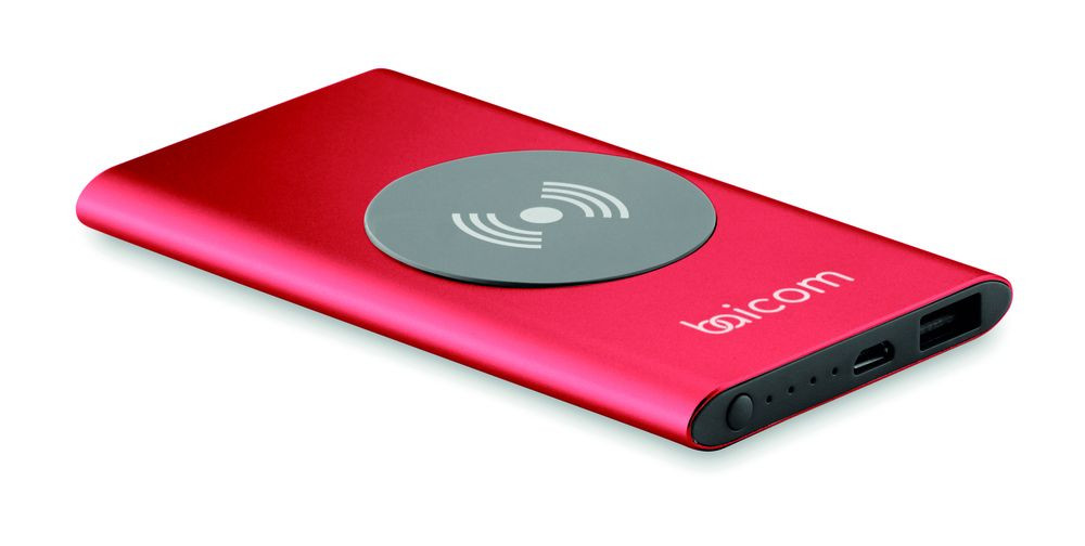 Wireless aluminium charging power bank with 4000 mAh capacity.