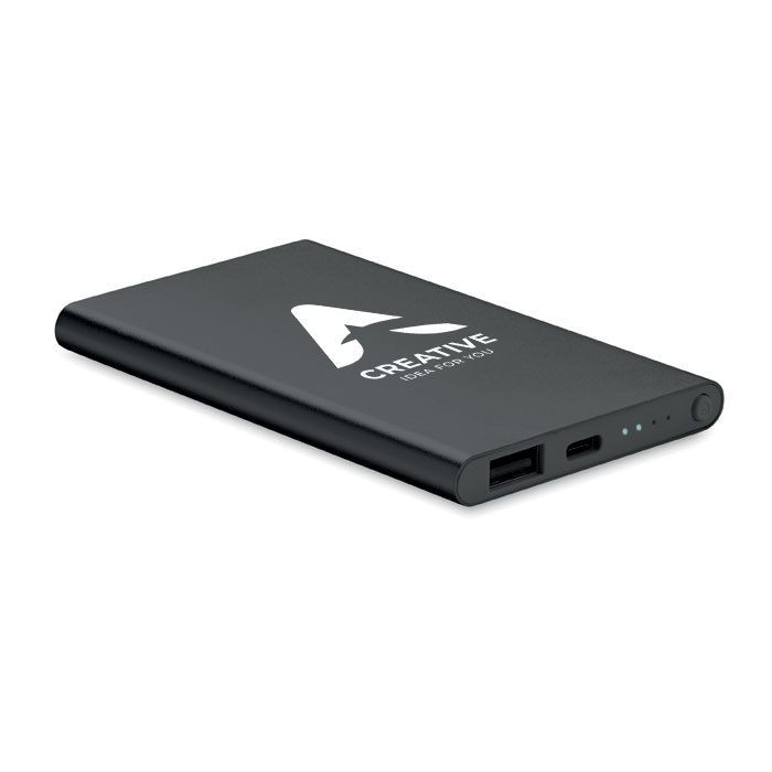POWERFLAT C UltraSlim 4000mAh Aluminum Type-C Power Bank - Black - GiftRetail MO6825