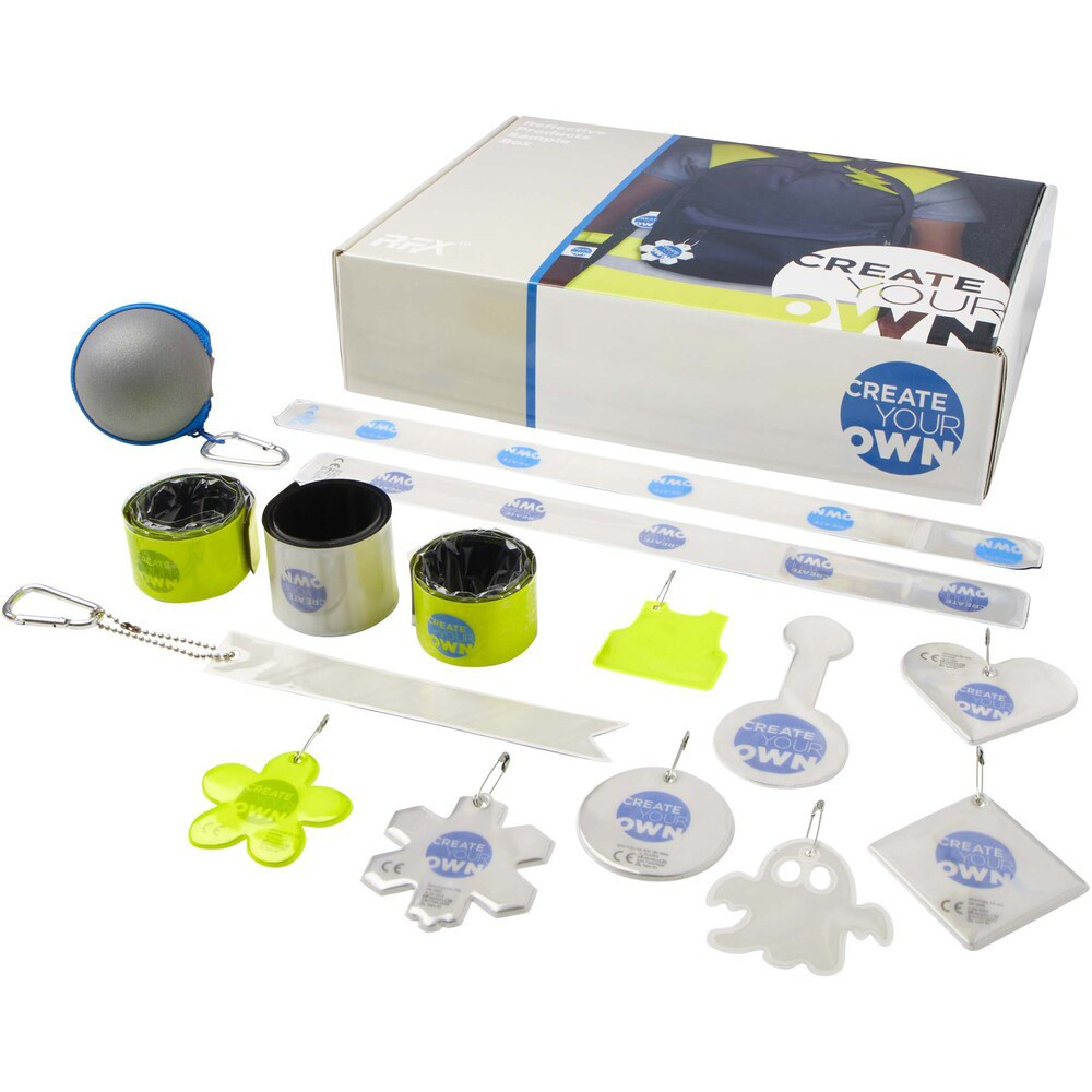 Includes 5 slap-wraps, 8 reflective hangers, 1 reflective magnet, 1 reflective meteor and 1 reflective product catalogue. Products are manufactured in Europe are tested and certified to meet the EN17353:2020 standard Type B1 and B2, guaranteeing high quality and visibility.