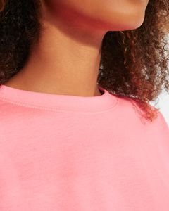 Women's cropped short-sleeve tee in 170 gsm cotton jersey, offering a durable and professional finish for custom printing or stylish casual wear. This Roly CA7129 loose-fit t-shirt provides a modern, relaxed silhouette suitable for fashion-forward wardrobes and promotional events. Featuring a 1x1 ribbed crew neck with wide trim and reinforced covered seams, it ensures longevity and shape retention even after multiple washes. The mid-weight 170 gsm single jersey fabric provides a smooth surface for screen printing, DTF, and embroidery. Whether used as a blank basic for everyday retail or as a customized canvas for brand merchandise, this tee balances contemporary aesthetics with reliable construction. Available for bulk purchase, it is a staple for clothing brands, dance studios, and marketing agencies seeking a premium cropped fit.