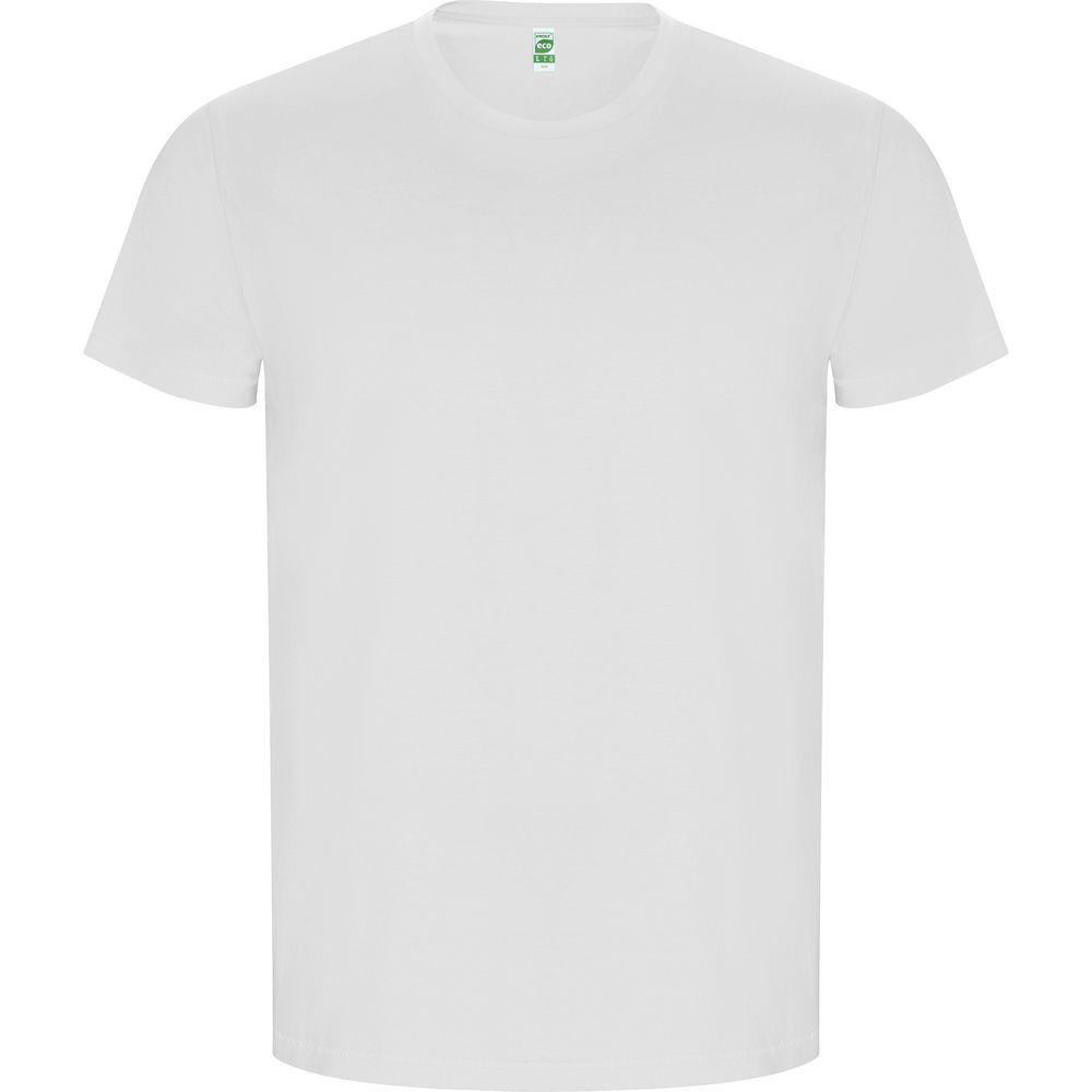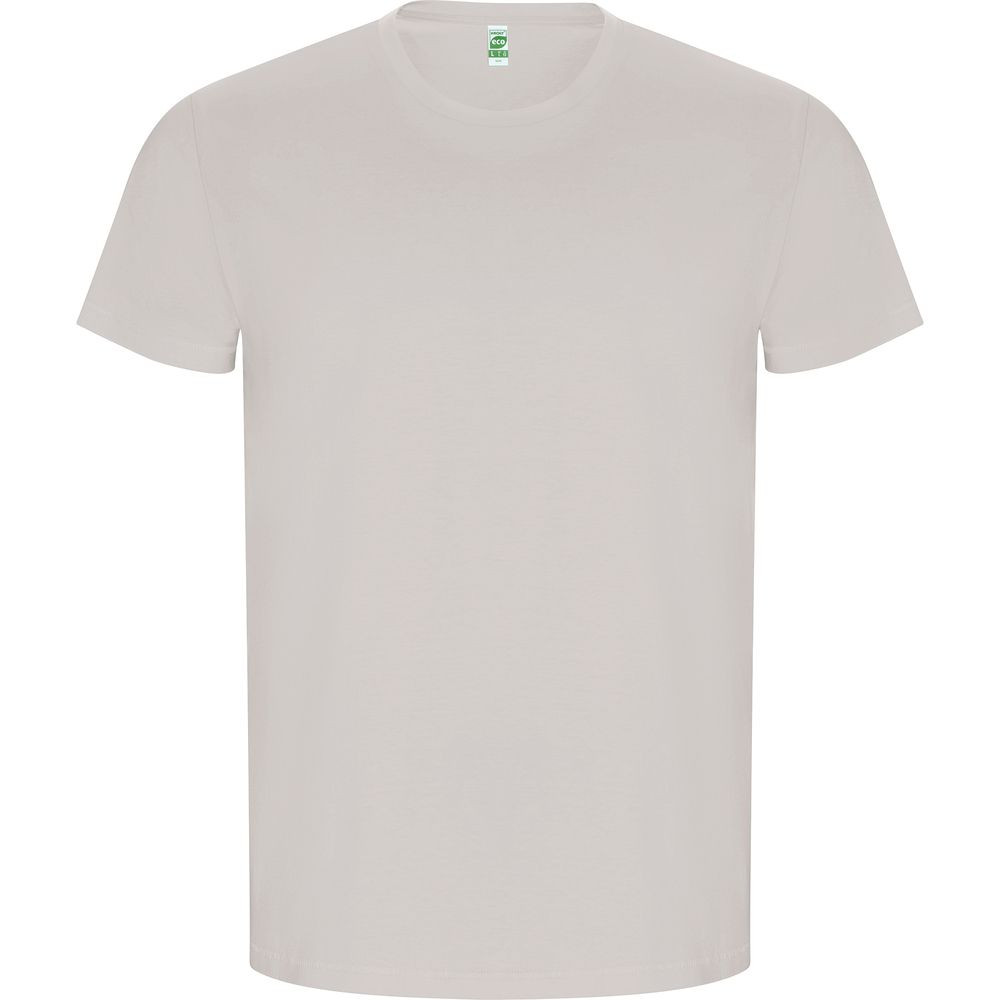 100% combed organic cotton, single jersey.Colour: 160 gsm.White: 170 gsm.Heather grey colour (58): 85% organic cotton / 15% viscose.