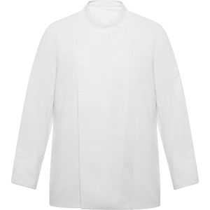 Mandarin collar and tailored sleeves with turn-ups on cuffs