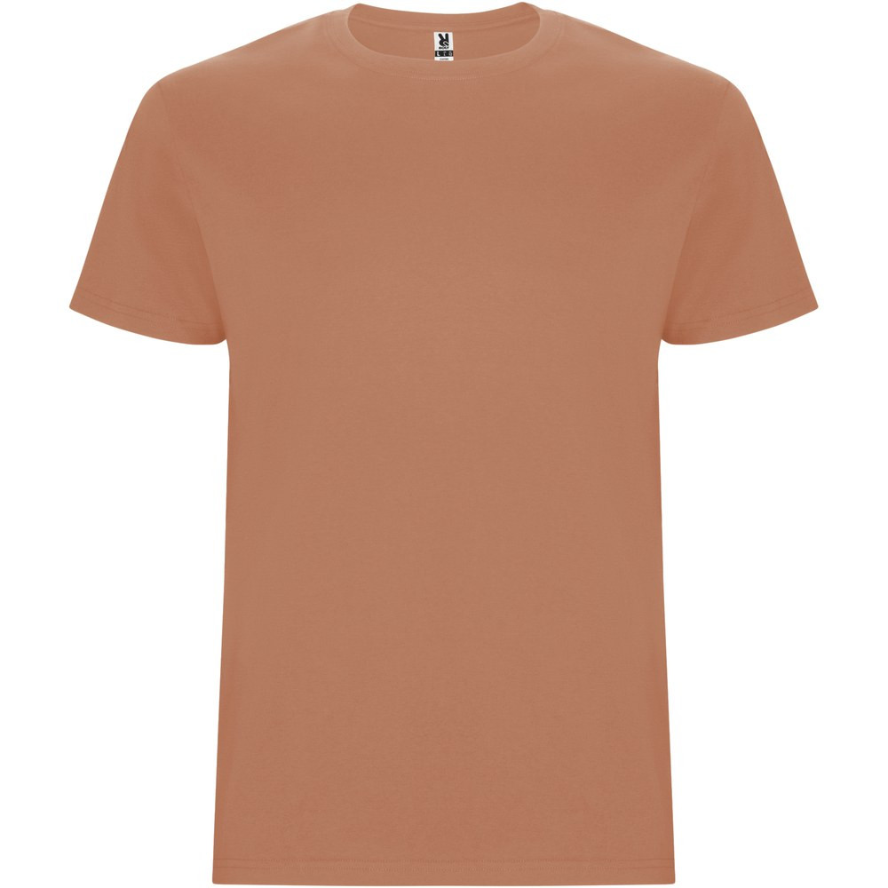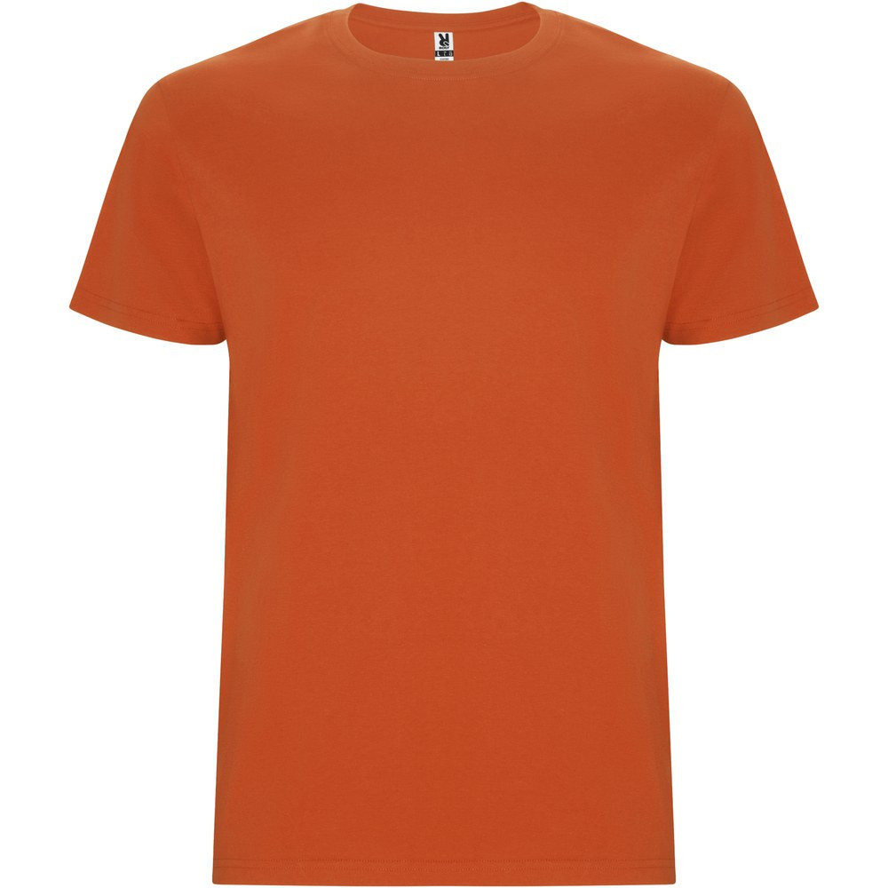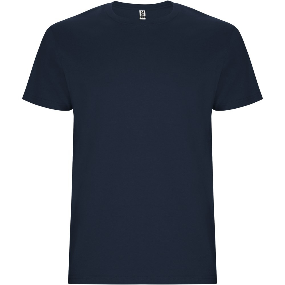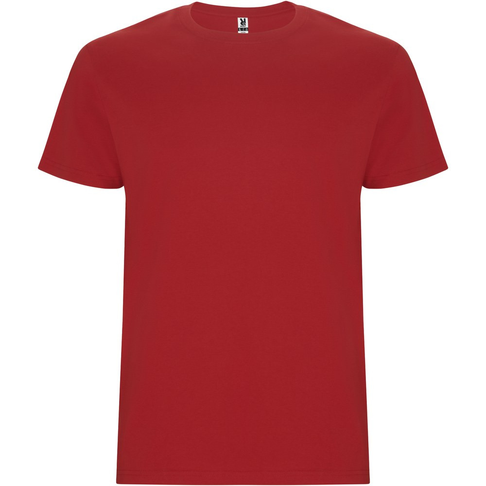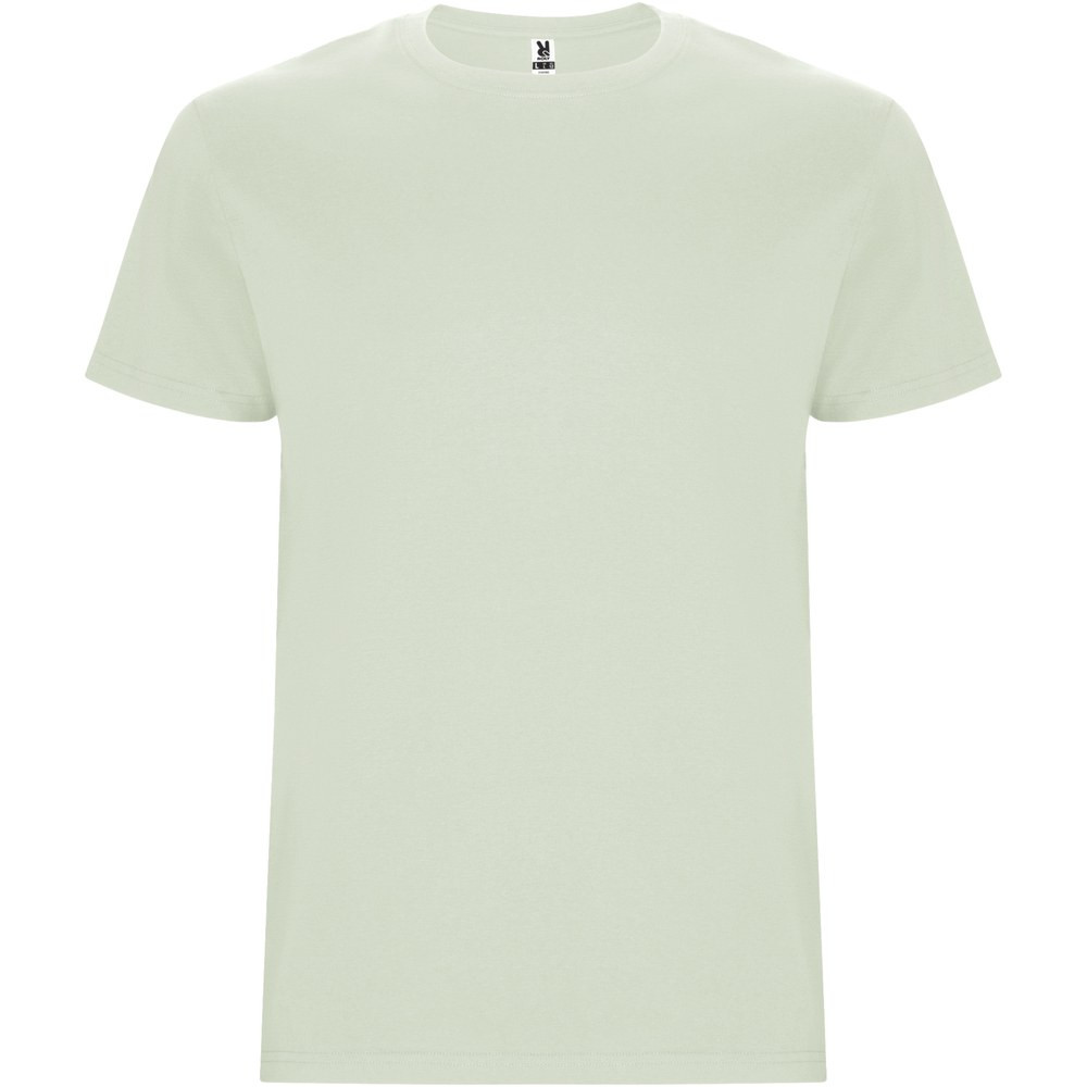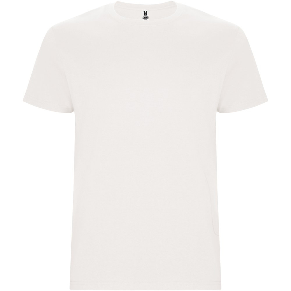 Tubular short-sleeve t-shirt. Crew neck with elastane. Side seams. Removable label.