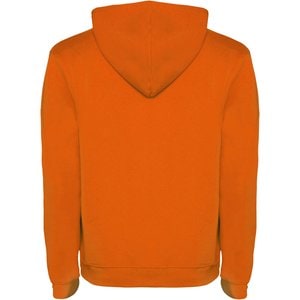 Hoodie with double fabric, adjustable drawcord, reinforced covered seams in collar and kangaroo style pocket. Available in uni-colours and two-tone colours. 1x1 elastane rib in cuffs and waistband. Removable label. The model is 185 cm and is wearing size M.