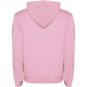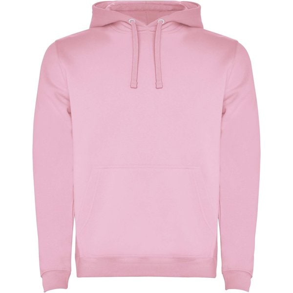 Hoodie with double fabric, adjustable drawcord, reinforced covered seams in collar and kangaroo style pocket. Available in uni-colours and two-tone colours. 1x1 elastane rib in cuffs and waistband. Removable label. The model is 185 cm and is wearing size M.