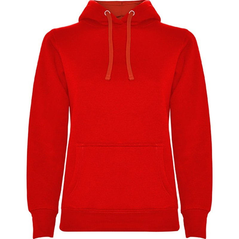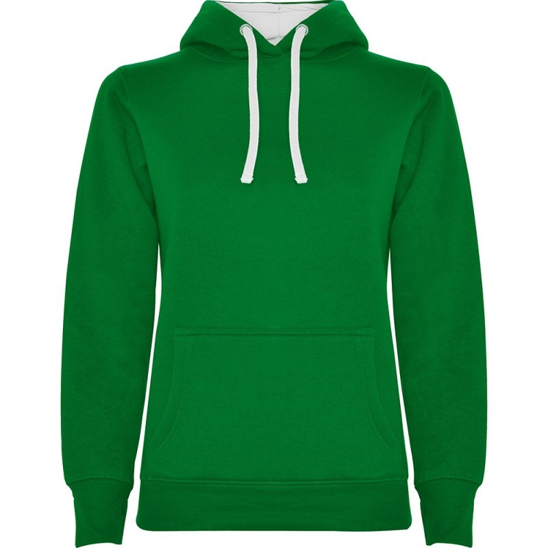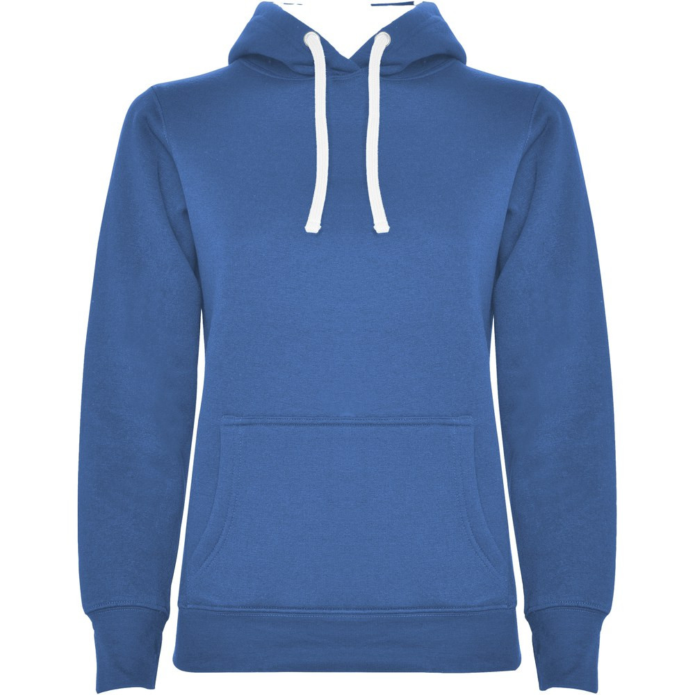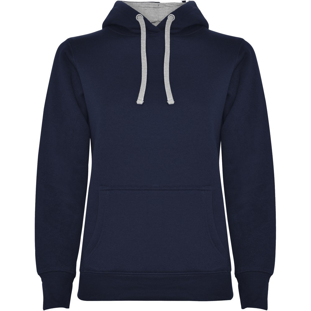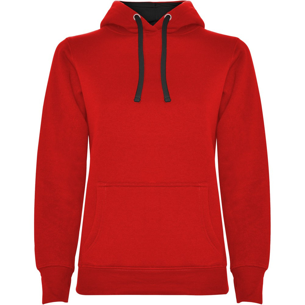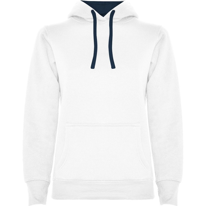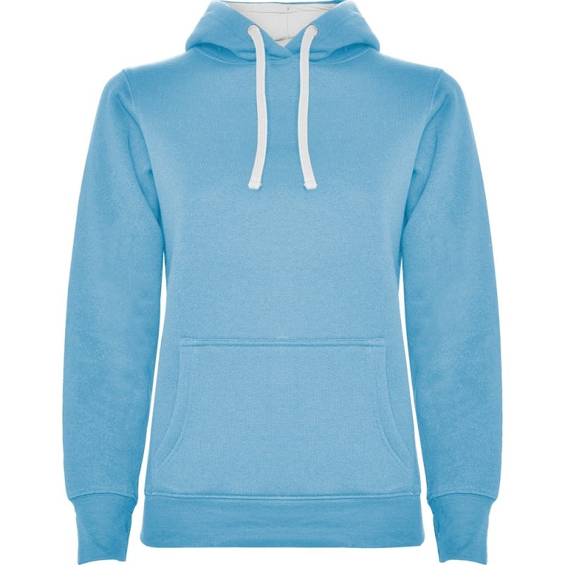 Fitted-cut sweatshirt with two-colour hood in double fabric, contrasting adjustable drawcord, covered seams in collar and kangaroo pocket. 1x1 elastane rib in cuffs and hem. Thumb-slit detail. Removable label. The model is 179 cm and is wearing size S.