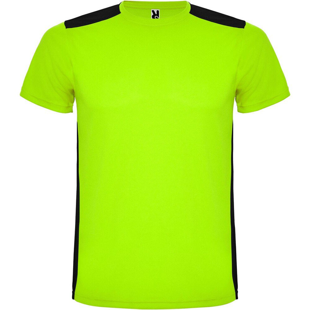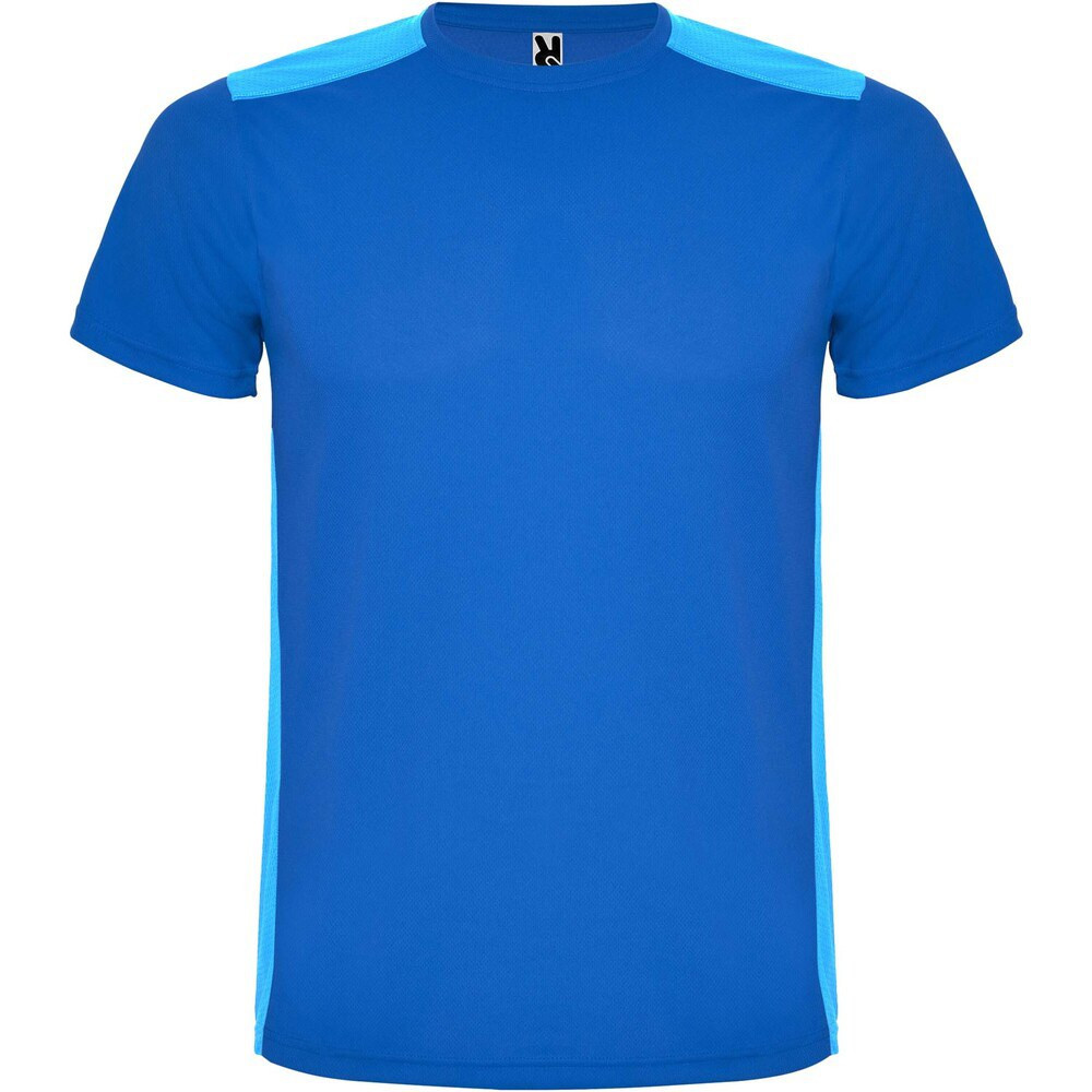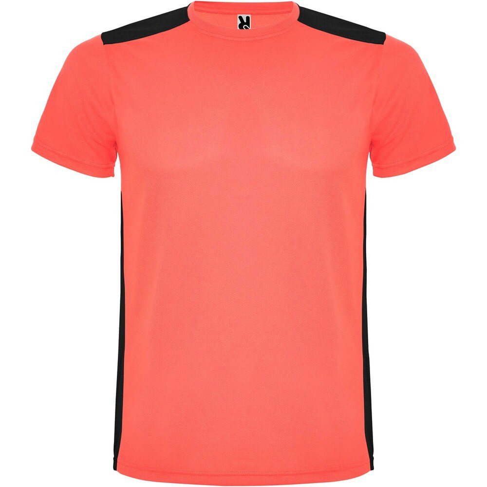 Easy-dry, technical and breathable fabric. Crew neck. Combination of two polyester fabrics on the back and shoulders. Bird's eye fabric on front and breathable 3D mesh fabric at the back. Fabric prepared for moisture absorption. Decorative zigzag backstitch on sides and shoulders. Back pattern slightly longer. Removable label.