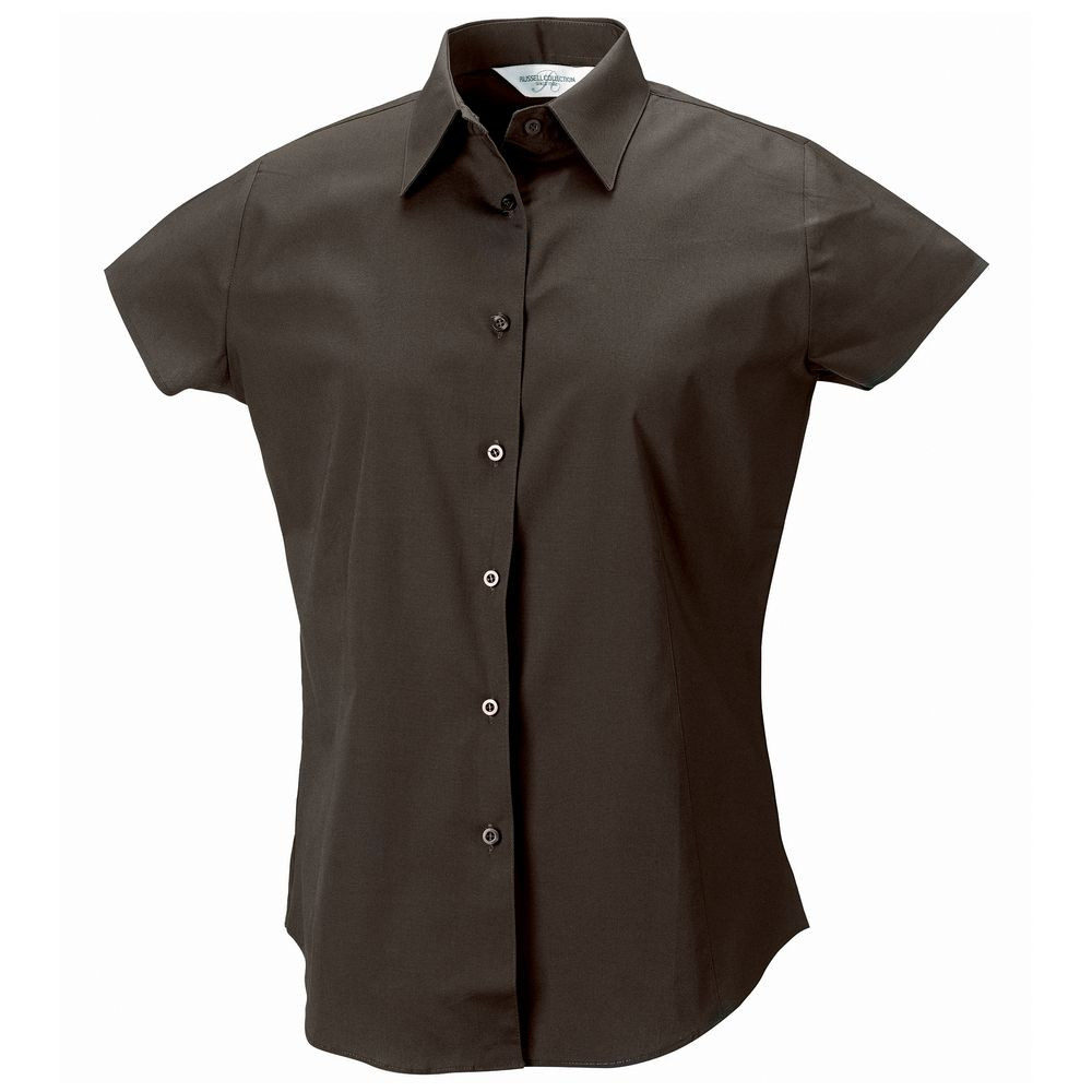 Russell Collection J947F - Chocolate - Women's short sleeve easycare fitted stretch shirt