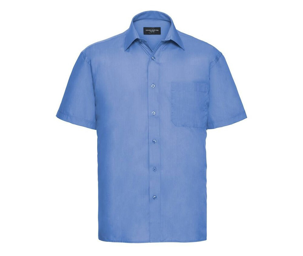 Russell Collection's JZ935 shirt is more than just an office shirt. This men's garment is phenomenal, with its regular fit, short sleeves, and cotton and polyester poplin fabric. It is more stylish, resistant, and comfortable, making it suitable for the summer season. This model also has the advantage of being simple to maintain, as it requires little ironing. Its finish authenticates its high quality. This men's poplin shirt features 7 tone-on-tone buttons, a left-side chest pocket, and a classic whale collar. There are also two pleats in the back. Why don't wear it to the office as well as a dressy party or a date? This short sleeve men's poplin shirt is available in multiple sizes from S to 4XL. It also has a women's model under the reference JZ35F.