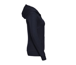 Authentic feminine zipped hooded sweatshirt in premium 3-layer fabric for maximum comfort and high performance. A durable choice for custom branding. This contemporary hoodie features a luxurious 3-layer construction that ensures warmth and a smoother surface for decoration. The feminine cut provides a modern silhouette, while the YKK metal antique silver zip adds a touch of elegance. Designed with a 'kissing' covered zip, it allows for seamless embroidery or printing across the body. Technical details include flat chunky drawcords, a double-layer hood, and a dedicated MP3 earphone access point. Whether used as a high-quality blank for everyday wear or as a canvas for bulk promotional projects, this sweatshirt stands out for its durability and technical finish. Suitable for 40C wash and low temperature tumble drying, it maintains its shape and performance over time.