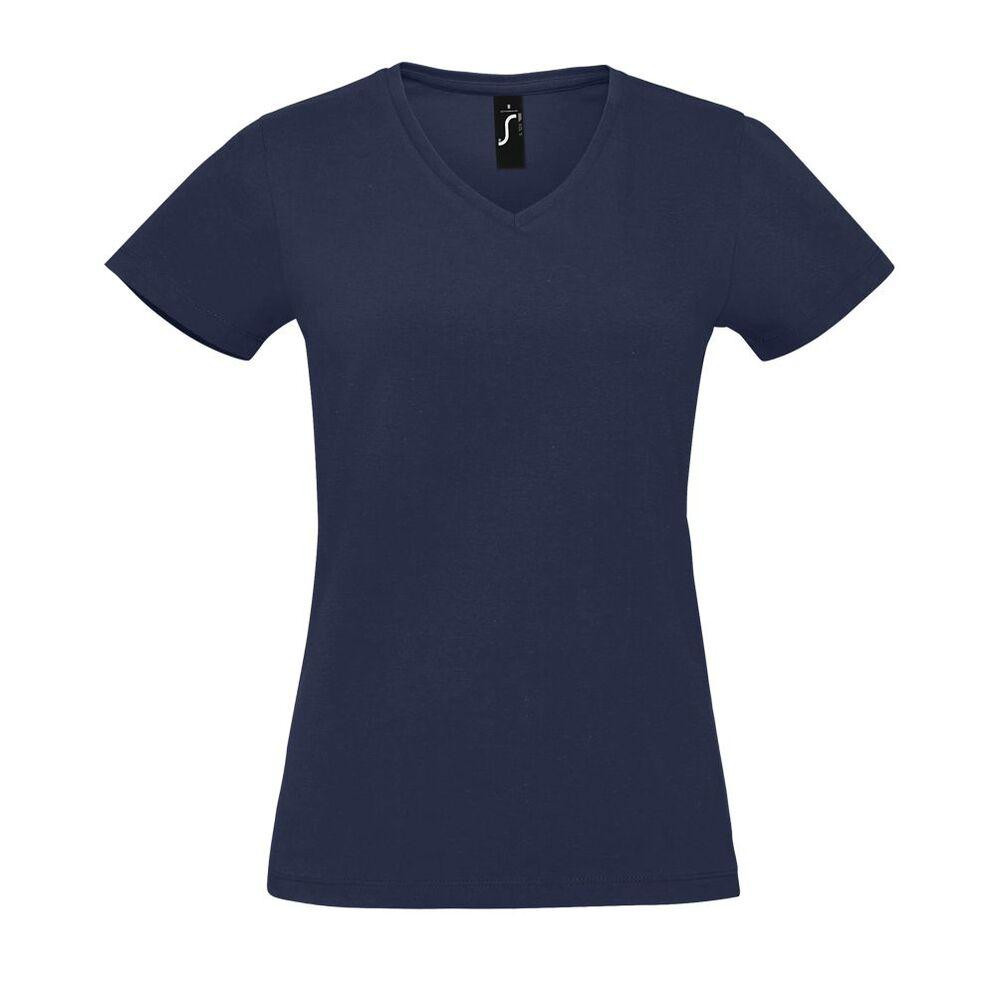 The Sol's 02941 t-shirt is a timeless wardrobe staple with a flattering fit for all women. Because of its V-neck, it clears the upper body and lightens the silhouette. Furthermore, with a fitted cut, it has the great effect of highlighting your femininity by subtly revealing your curves. In short, this shirt allows you to be both seductive and wise. Furthermore, it is extremely comfortable. It is soft to the touch and breathable thanks to its semi-combed Ringspun cotton fabric. Because of these characteristics, you can wear it all year round. This women's V-neck t-shirt is available in a variety of sizes ranging from S to 2XL and in a variety of colors to suit all tastes.