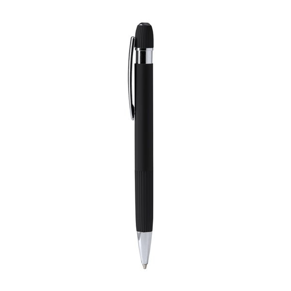 GARET Aluminium ballpoint pen with striped grip in metallic finish and touch pointer