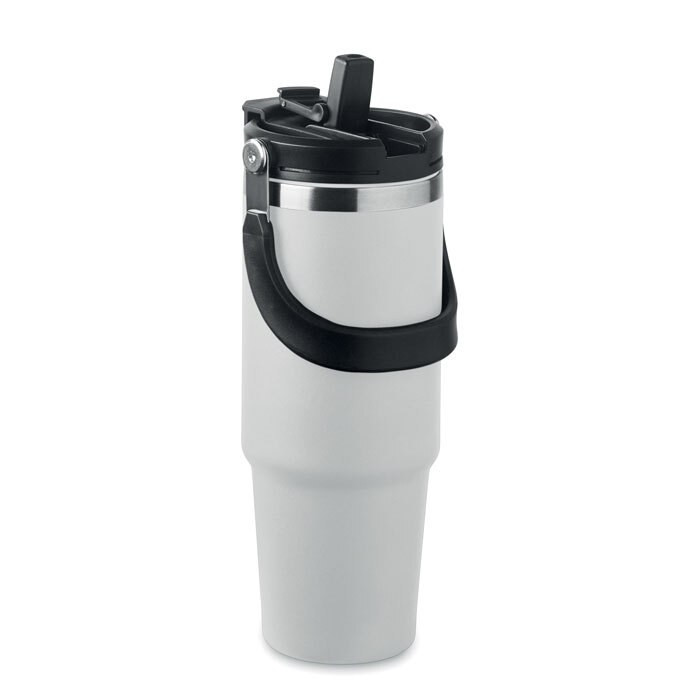 Double wall recycled stainless steel (90% recycled stainless steel and 10% stainless steel) tumbler with lid with inner straw, foldable mouth piece and direct drinking opening .