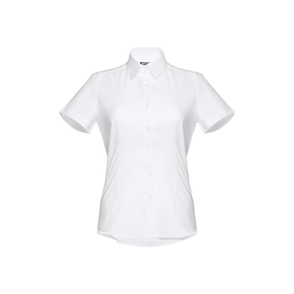 Short-sleeved oxford shirt for women in 70% cotton and 30% polyester (130 g/m²). Fitted shirt with 2 darts on the back and front and double seam on the sleeve hem. Contains 7 pearl coloured buttons