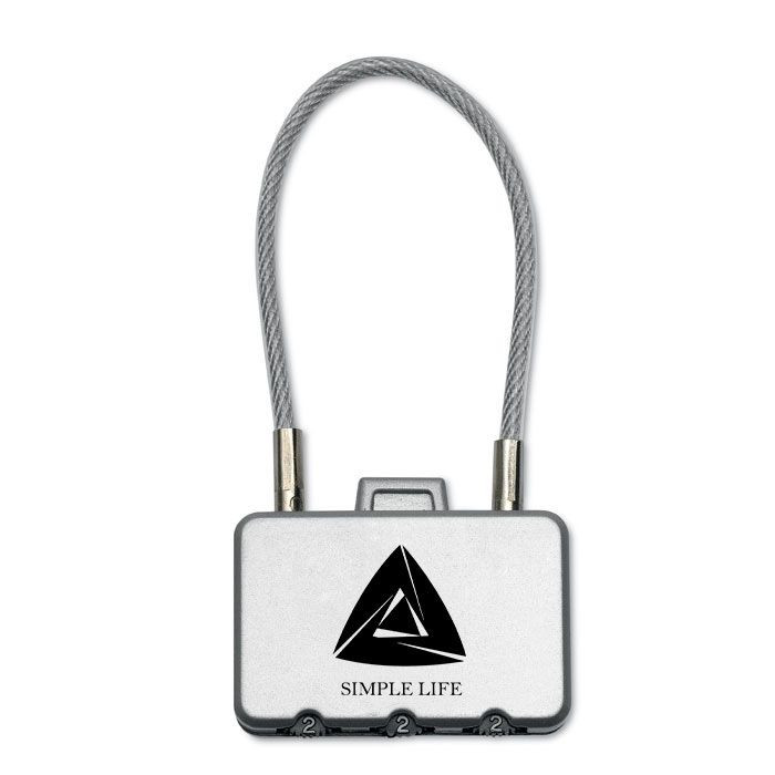 This lock opens with a combination of 3 digits. This metal lock is available in a silver colour.