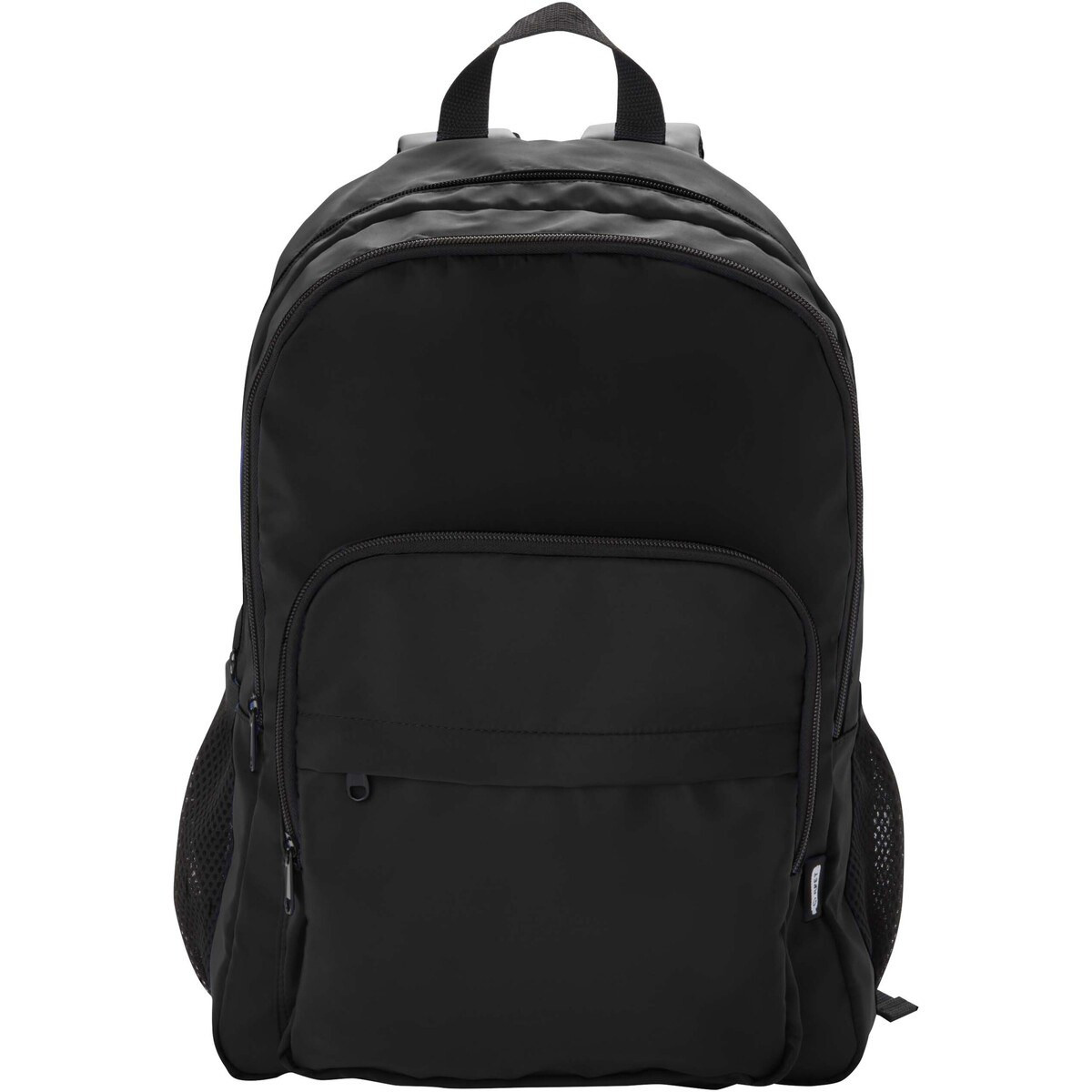 The Trend Plus backpack is crafted with GRS certified recycled soft and wrinkle-resistant fabric and quality RPET lining. The backpack features a 15” laptop compartment, an organisational compartment, zipped front pockets, side elastic mesh pockets, and air mesh backside with a trolley webbing strap. Adjustable shoulder straps for optimal wearing comfort. Volume capacity: 20 litres. Resistance up to 10 kg weight. PVC free.