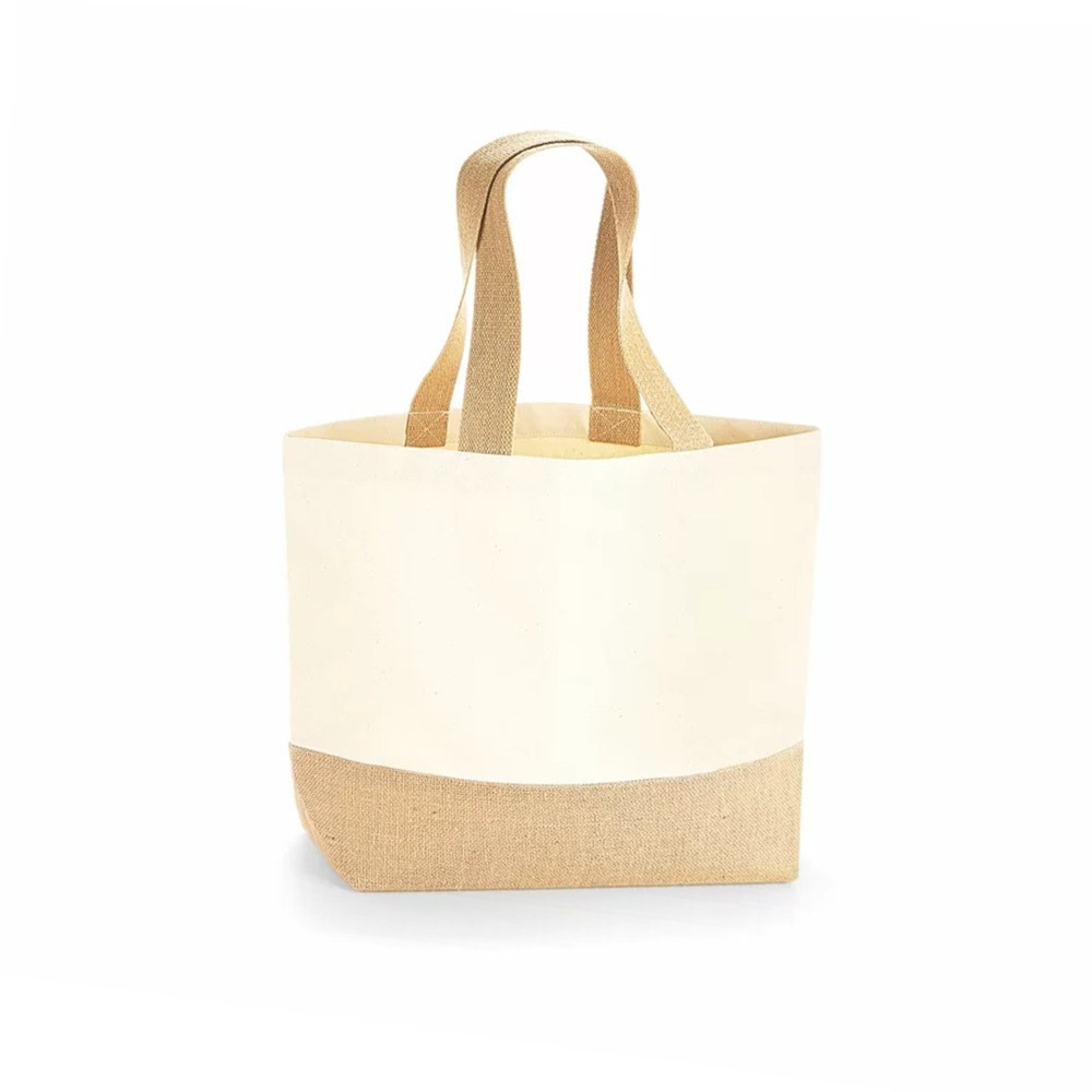 This WM451 shopping bag from Westford Mill is the essential accessory for shopping. This bag has a large capacity of 18 liters for dimensions of 34 x 36 x 13 cm , it is a real tote that does not lack elegance. Indeed, it is both chic and feminine. A style that he owes mainly to his manufacturing materials: cotton (with a weight of 407g/m² ) married to hessian . For those who find it simple, know that this shopping bag is customizable . It has a large printing surface of 43 x 21 cm on its white part. You can print texts or a logo on it, for example. This model is very comfortable to wear. It is equipped with 59 cm handles to carry your belongings by hand or on the shoulder when the bag is overloaded.